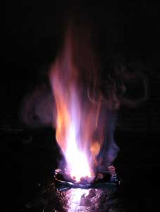 After gathering all the necessary fire tinder and large pieces of wood to keep your fire going, place a teaspoon of Potassium permanganate on a flat surface. Carefully add the same amount of Glycerine or Antifreeze evenly on top of your pile. Next, stand back a couple of feet and wait at the ready with your tinder.